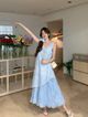 5285 CNY Sleeveless Blouse & Satin Skirt Set