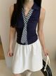 3479 Sleeveless Plaid Polo Blouse