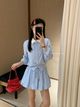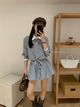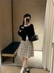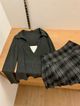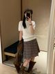 4569 Plaid Polo Blouse & Short Skirt Set