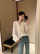 4596 V-Neck Ribbon Long Sleeve Top