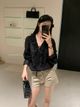 4571 Sheer Polka Dots V-Neck Blouse