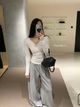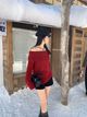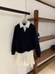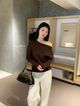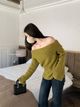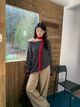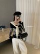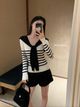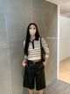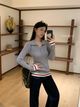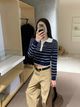 5028 Korean Style Stripes Knit Top with Shawl Set