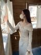 5042 CNY Fake 2pcs Lace Dress with Safety Pants