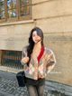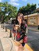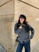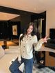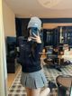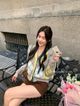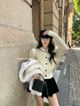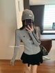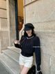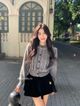 4855 Black Plaid Polo Blouse & Bubble Shorts Set