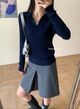 4854 Casual Long Sleeve Top & Front Tie Skirt Set