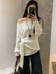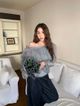 4100 Off Shoudler Black Top & Plaid Long Skirt Set