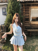 4722 CNY V-Neck Blouse & Lace Blue Skirt Set
