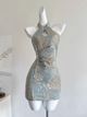 4306 Vintage Blue Halter Short Cheongsam