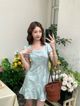 4357 Green Flower Short Dress