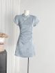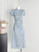 4404 CNY Grey Blue Short Cheongsam