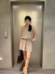 3674 Loose Bubble Ribbon Short Dress