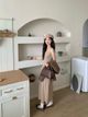 3313 V-Neck Cross Tie Plaid Long Dress