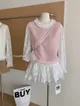 4901 3pcs Frenchy Blouse & Suede Vest & Skirt Set