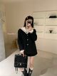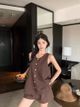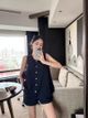 4855 Black Plaid Polo Blouse & Bubble Shorts Set
