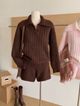 4956 Brown Cardigan & Stripes Knit Dress Set