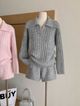 4790 3pcs Shawl & Stripes Blouse & Skirt Set