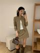4644 CNY Beige Blouse & Green Skirt Set